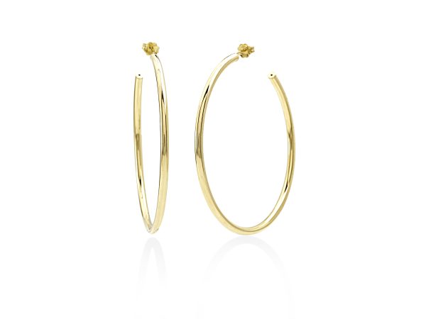 Open Back Plain Hoop Earrings in Yellow Gold Plated Silver with Butterfly Back